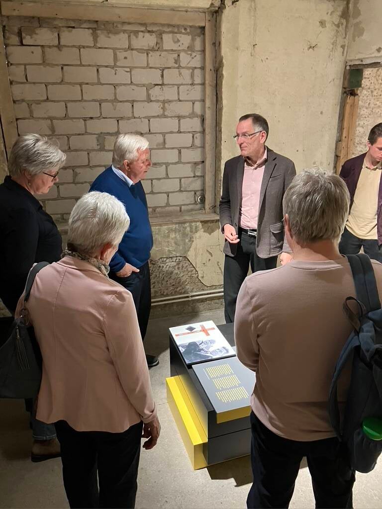 Toelichting Dr. Michael Gandder tijdens ons familiebezoek op 19.5.2023 in het Arbeitserziehungslager "Augustaschacht" te Ohrbeck in de speciale kamer ingericht in de memorial voor Hendrik Willem Gaertman. Van links naar rechts Mireille,Tiny en Henk Gaertman,Dr. Michael Gander Geschäftsführer, Dennis en gedeeltelijk zichtbaar Thomas Gaertman. Foto Simone den Haan.