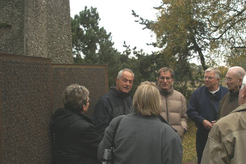 Toelichting gegeven bij het monument door Dr. Volker Issmer tijdens het bezoek Friedhofes in Meyerhöfen 20.10.2007 van links naar rechts