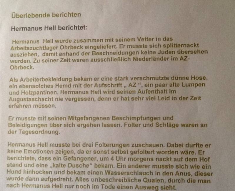 Op verzoek van Duitse autoriteiten heb ik indertijd een 3-daags bezoek gebracht aan Osnabruck en omgeving en heb een tweetal overlevenden ontmoet. Het was een ontmoeting die ik niet snel zal vergeten !