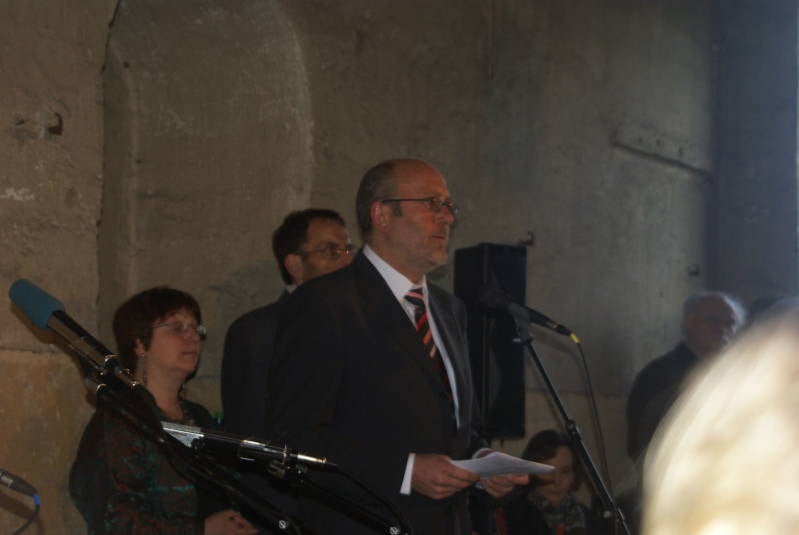 The Mayor of Osnabrück Michael Hagedorn in his speech on 6 April 2008 during the reopening of the Arbeitserziehungslager Augustaschacht in Ohrbeck.
