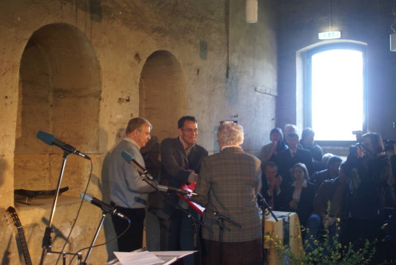 Frau Henny Wonink-Gaertman überreicht das Geschenk an Dr. Michael Gander