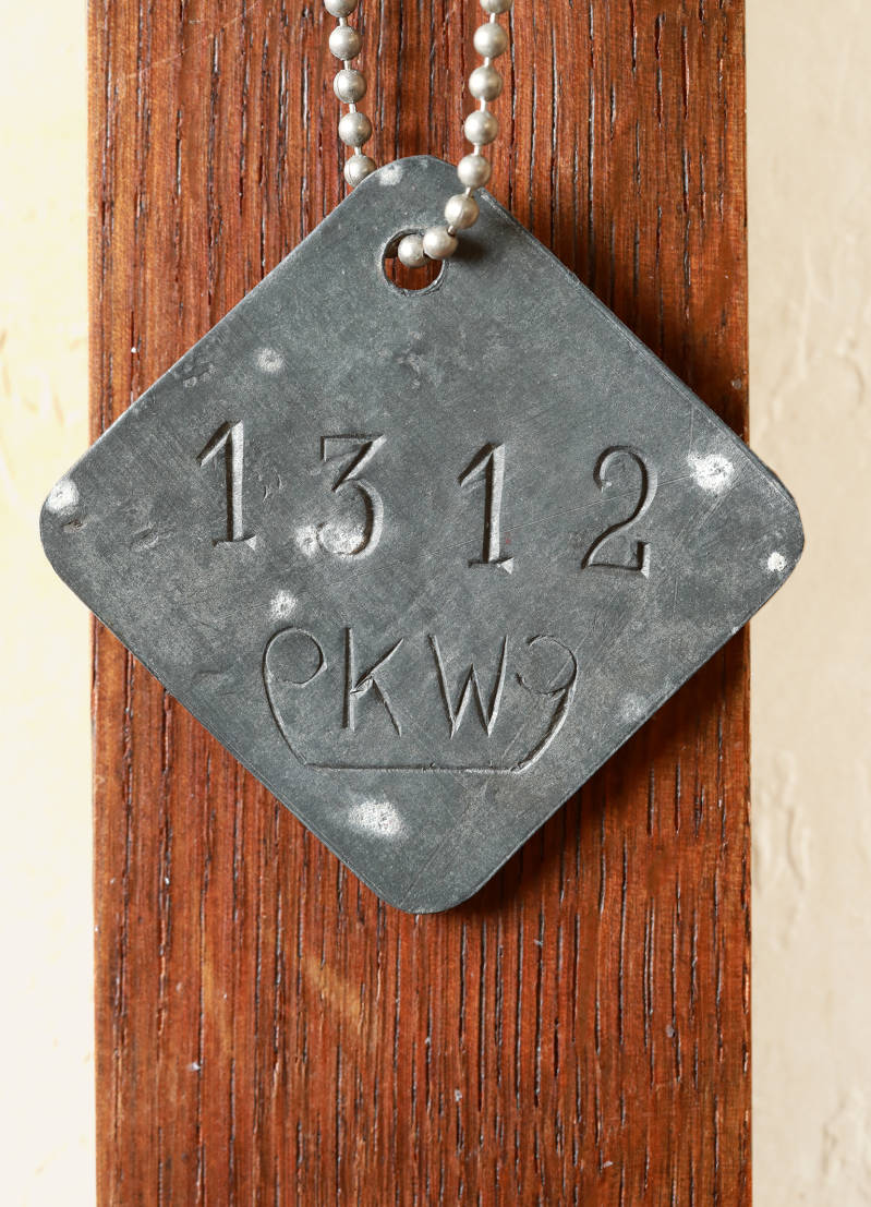 Die Häftlingsmarke KW 1312, die mein Vater dort tragen musste. Das einzige Exemplar, das Willem Mathijs Osthoff mit Gefahr für sein eigenes Leben aus dem Lager geschmuggelt hatte.