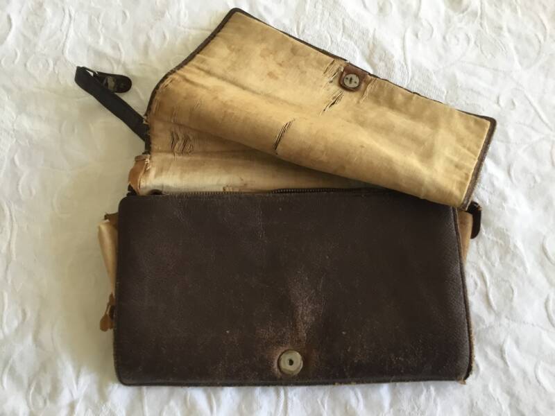 De Handtas van mijn moeder Jo Gaertman-Zimmerman, waarin alle belangrijke stukken werden bewaard.