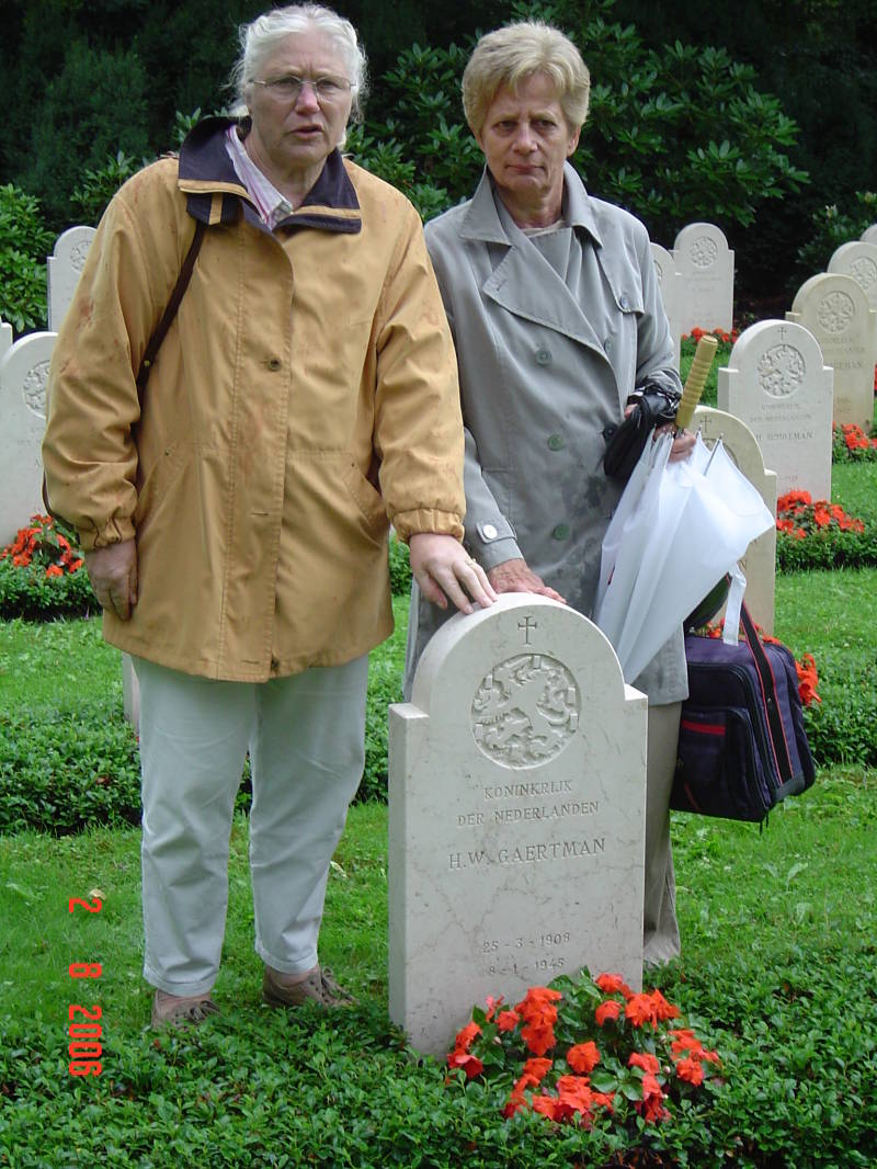 Henny Wonink-Gaertman en Tiny Gaertman - Blom bij het graf in Hannover. Foto Henk Gaertman