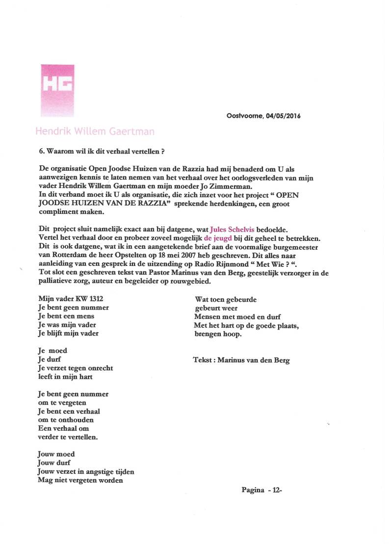 Mijn verhaal in het Belvédèrehuis te Rotterdam Katendrecht op 4 mei 2016 Rotterdamse Razzia